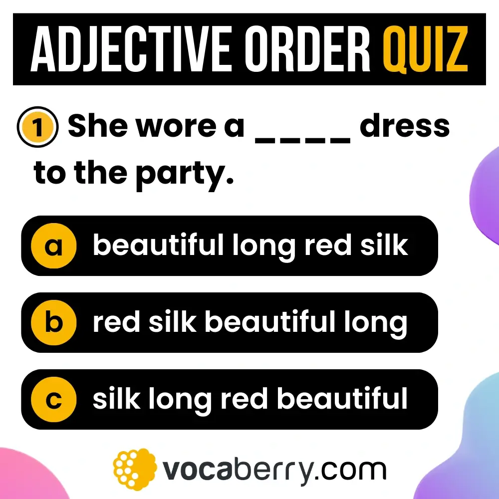 Test your English with this adjective order quiz and improve your grammar by choosing the correct adjective order to complete each sentence.